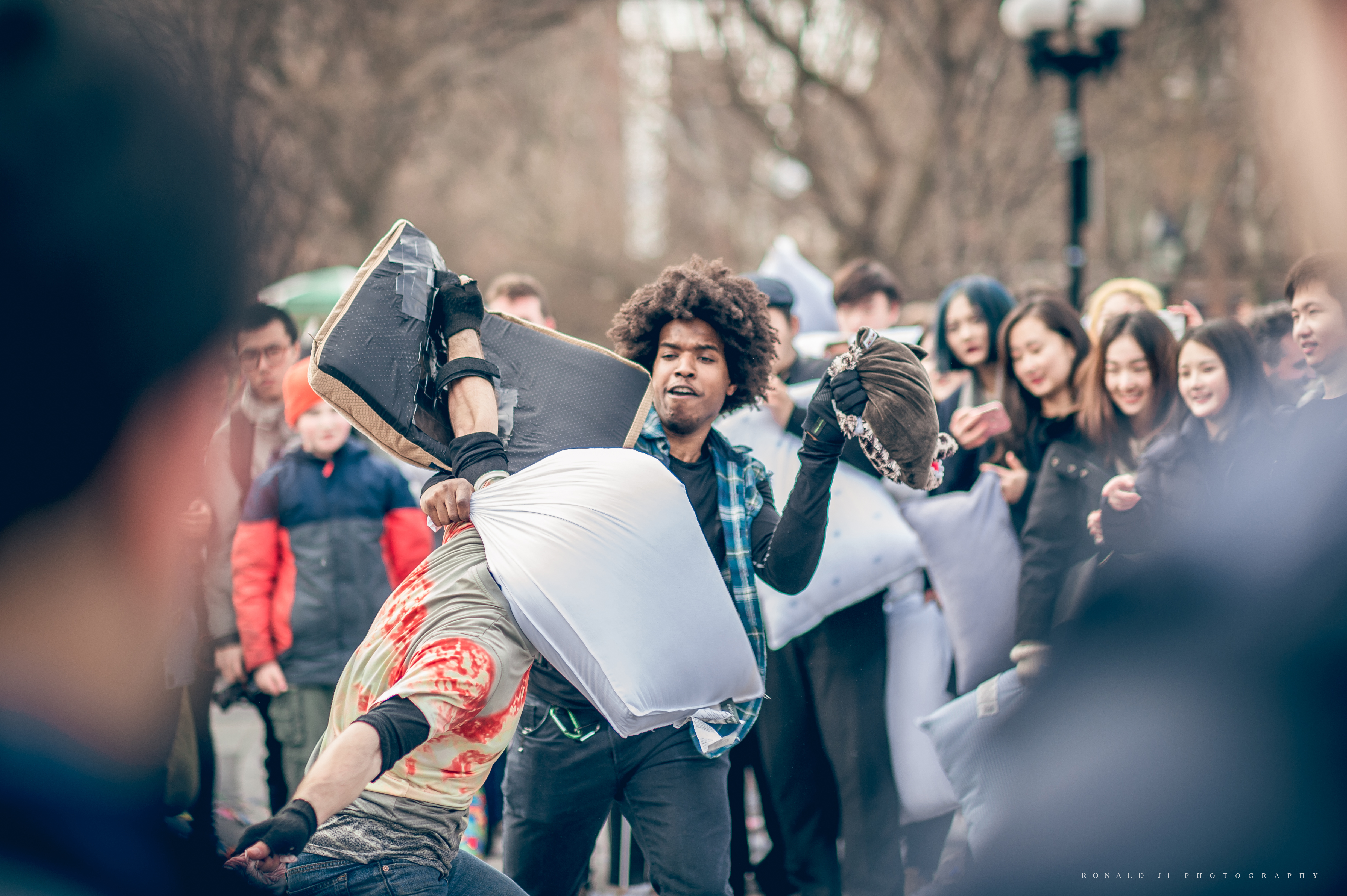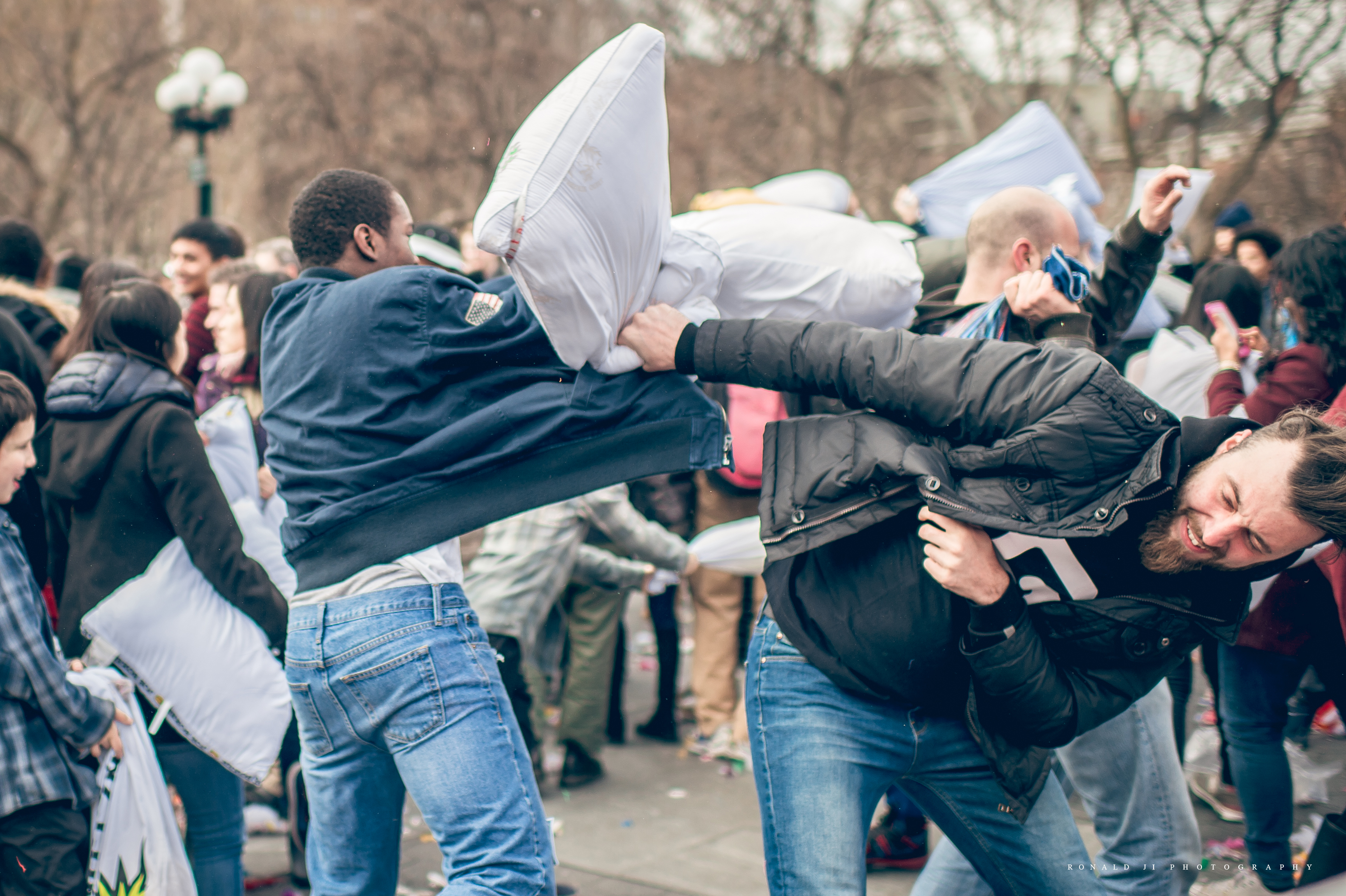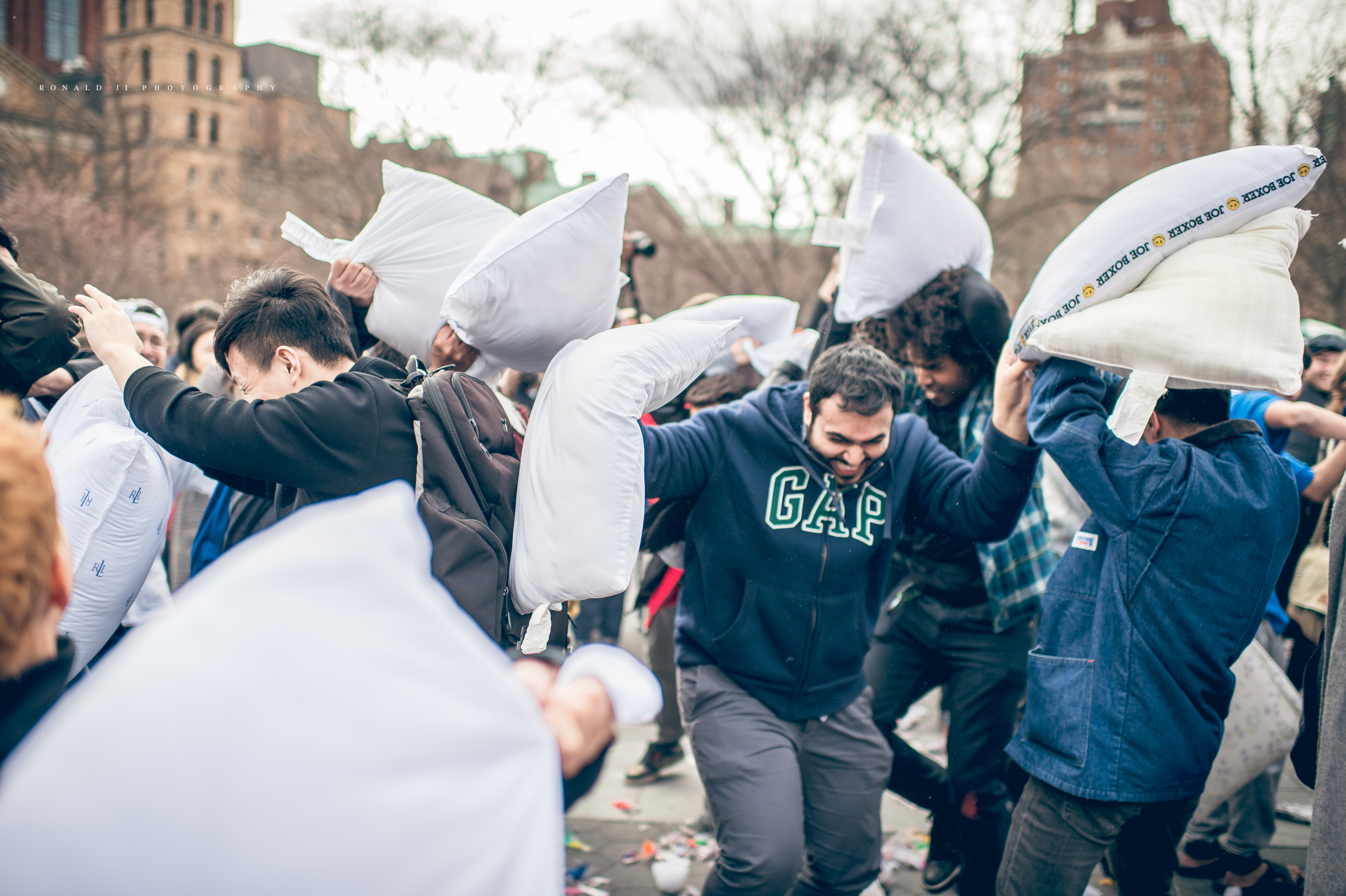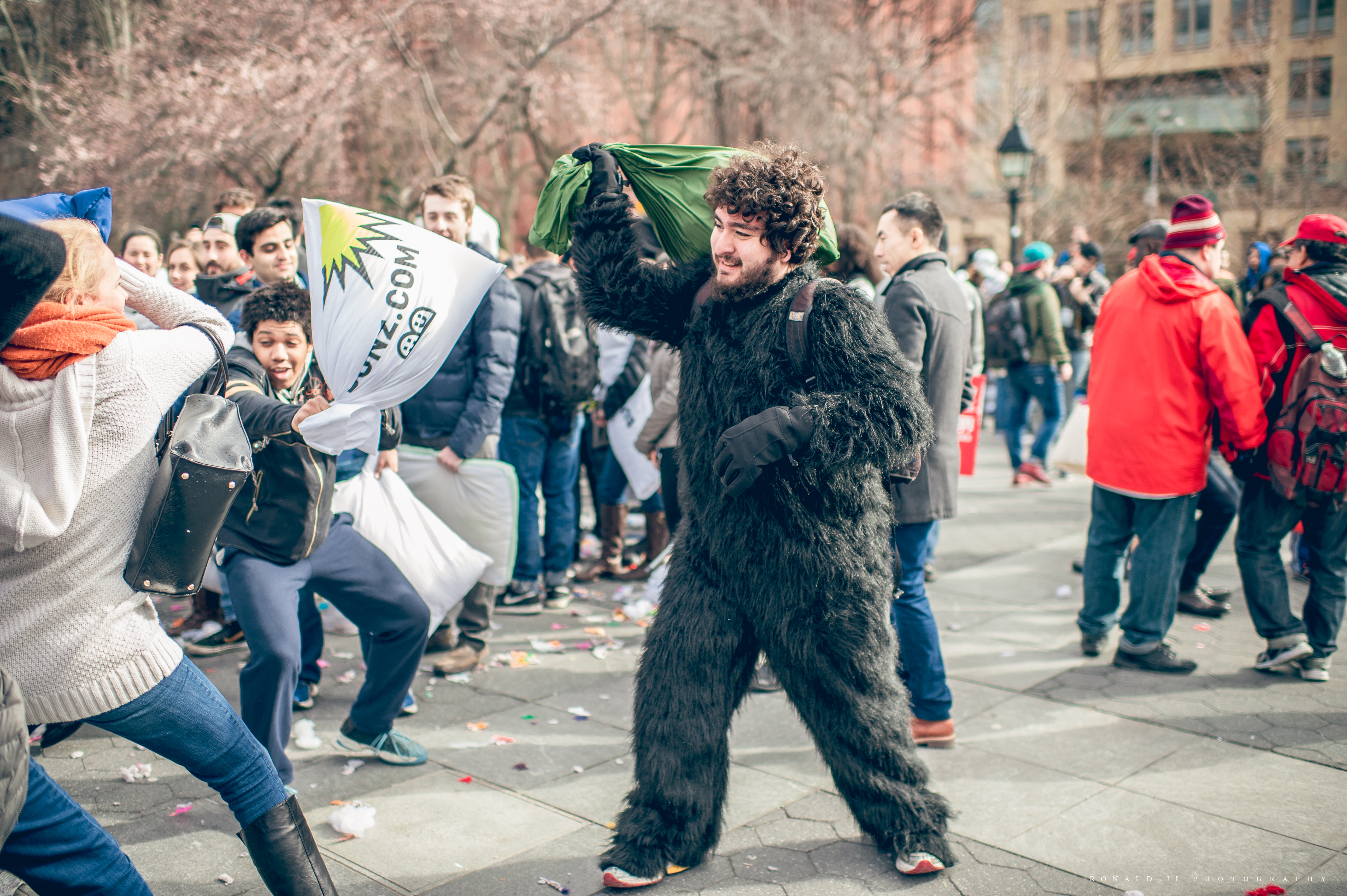 紐約有許多有趣的活動,4月的重頭戲便是Pillow Fight NYC 枕頭大戰。Pillow Fight原本只是一個快閃活動, 演變到後來,便有在戶外的大型睡衣趴,讓人重溫年輕時能不顧一切在街上嘻鬧的感覺,也讓生活在高壓的紐約客有個暫時釋放壓力、忘記煩惱的活動。