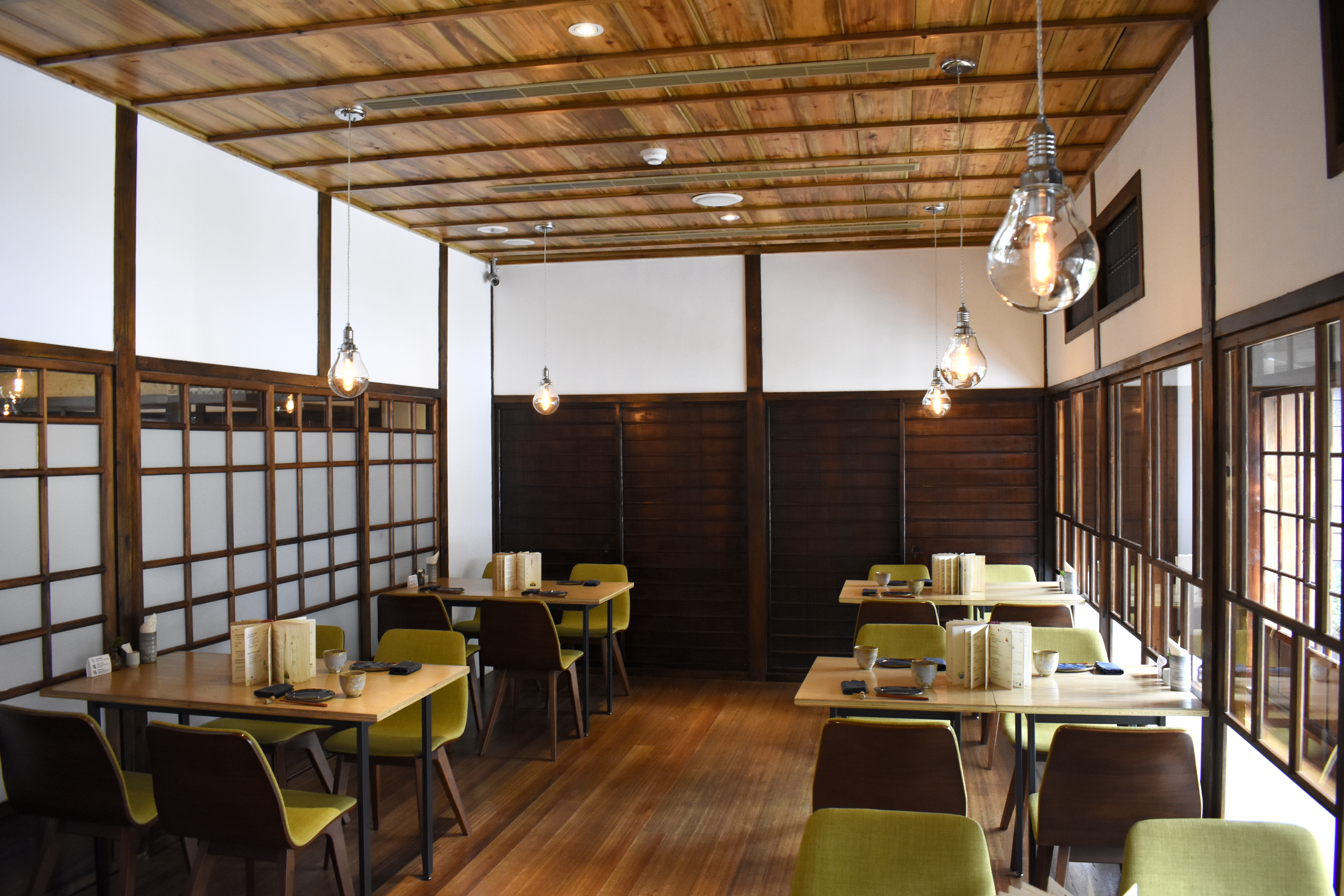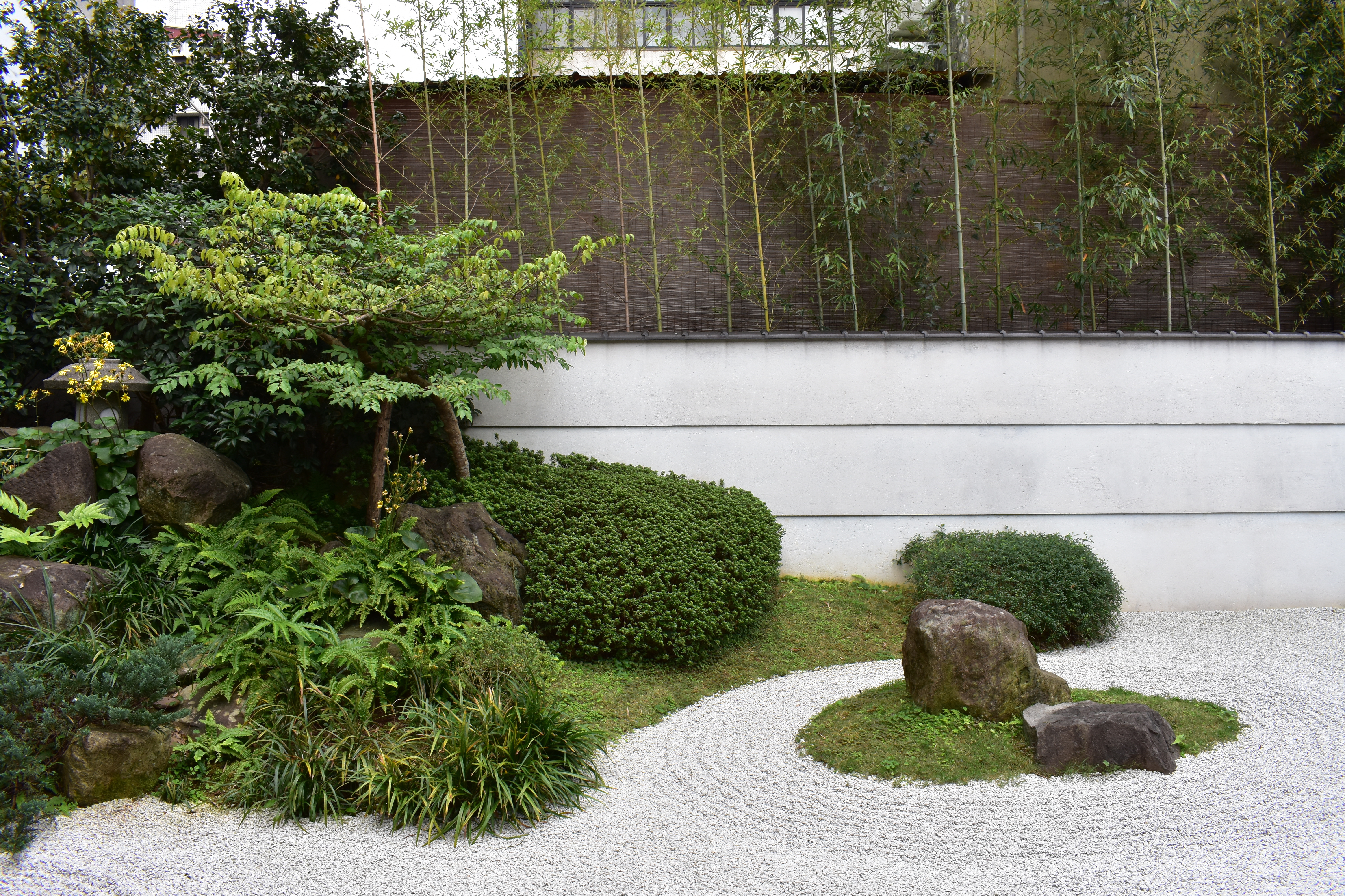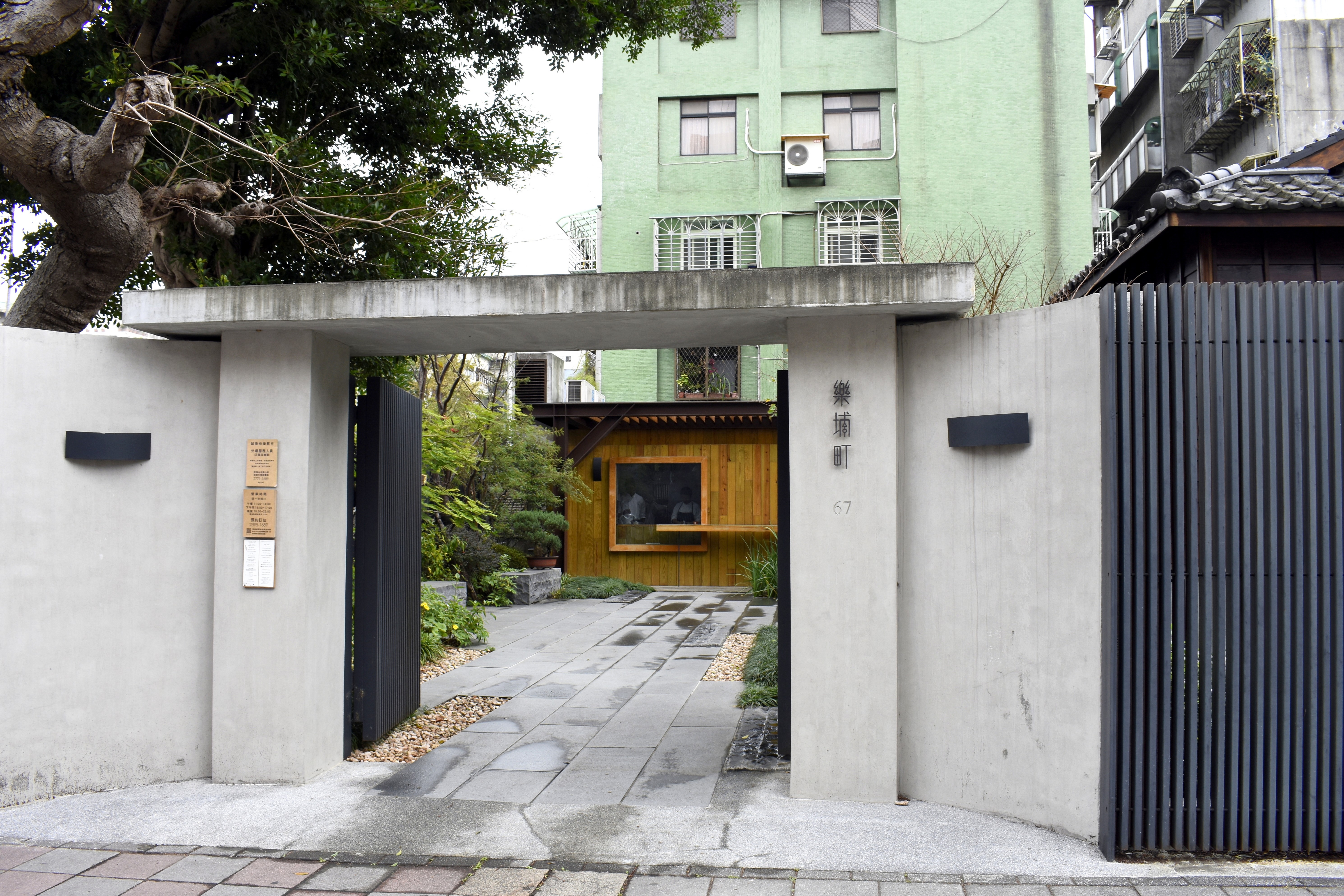 在台北市區,要找到原汁原味的日式老屋不容易,2015年開張的「樂埔町」,是少數保留完整建築格局、還能重獲新生的老屋之一。樂埔町的大門外觀十分低調,沒仔細看,會以為只是哪間豪宅大院,直到走入寬敞的石板庭院後,才發現和洋風格混融的木造日式老屋,夾處在一片綠色庭園之間,氣氛雅致而寧靜。還沒入屋,先坐在這舒適的庭院中,已能伴隨著清風徐徐,洗滌喧囂的心情。屋內後方,則還有一處請來日本庭院設計大師箱根植木設計的枯山水庭院,各式花草林木匯聚在一起,與老屋相互呼應,揉合出日式禪風的美學意境。