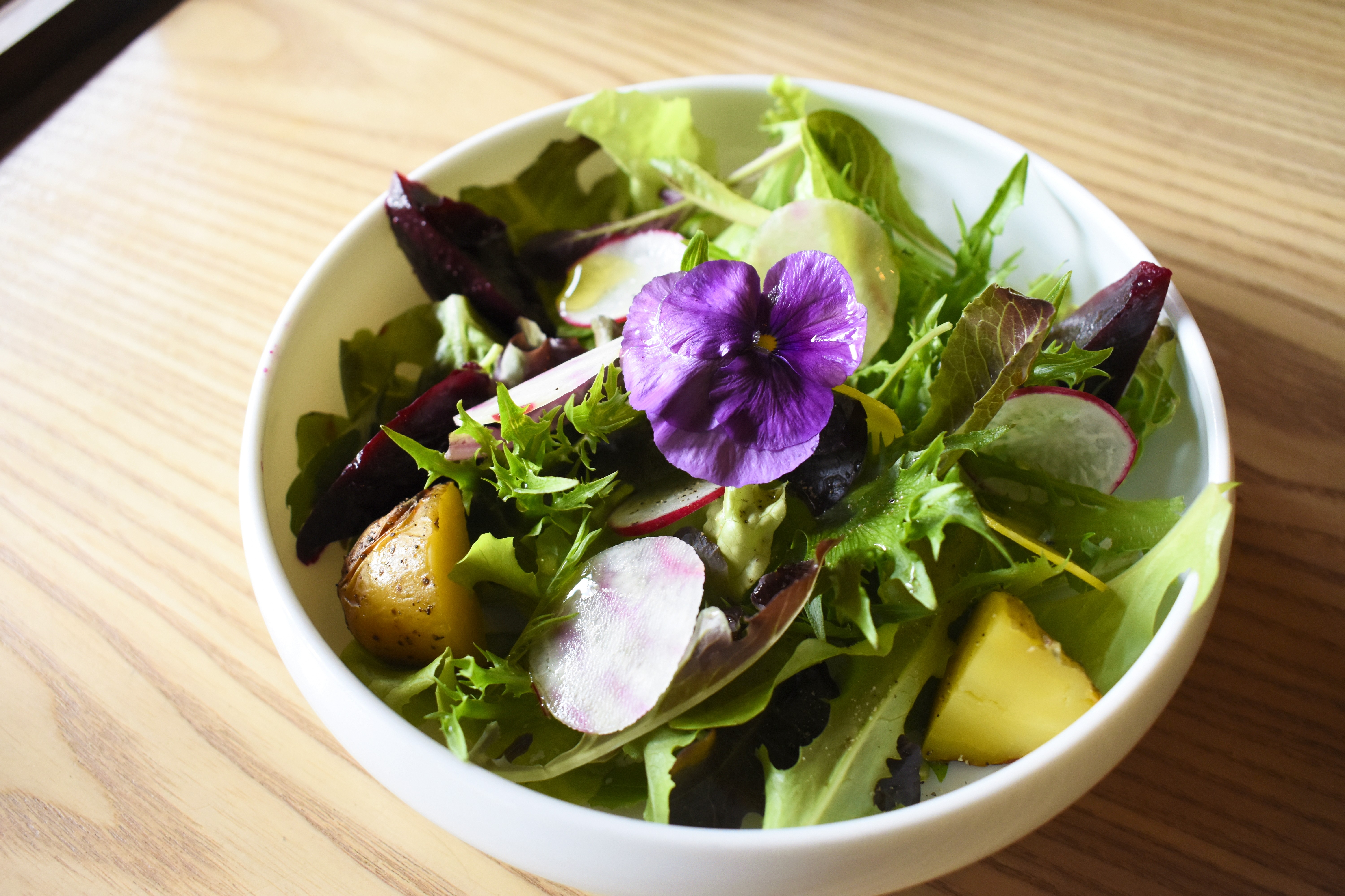 樂之宴沙拉。在地栽培生菜,淋上義大利手採初搾橄欖油Le Sciare。