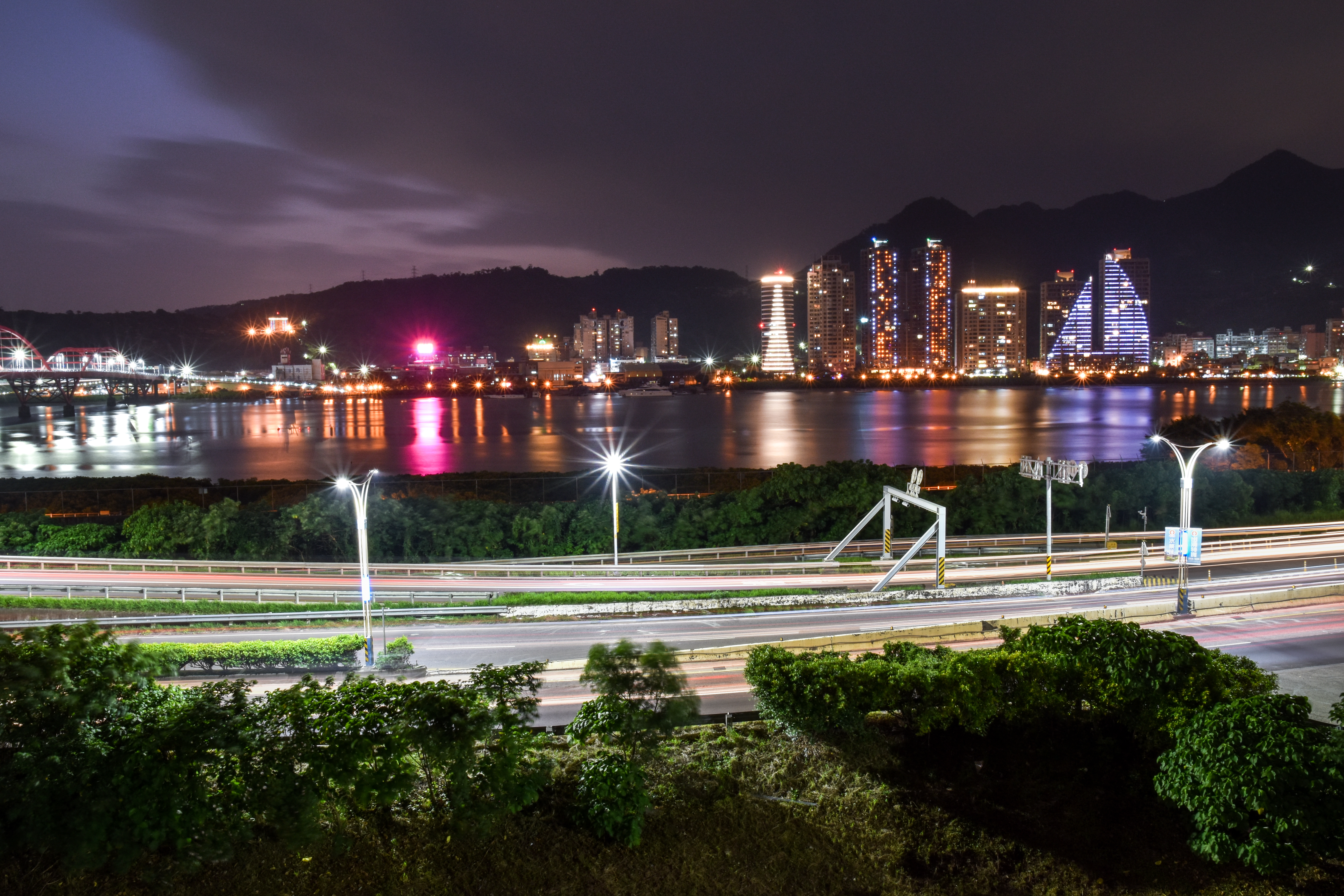 晚上我總會帶著家中阿狗,在淡水河畔散步,並順便拍攝家前迷人的景色