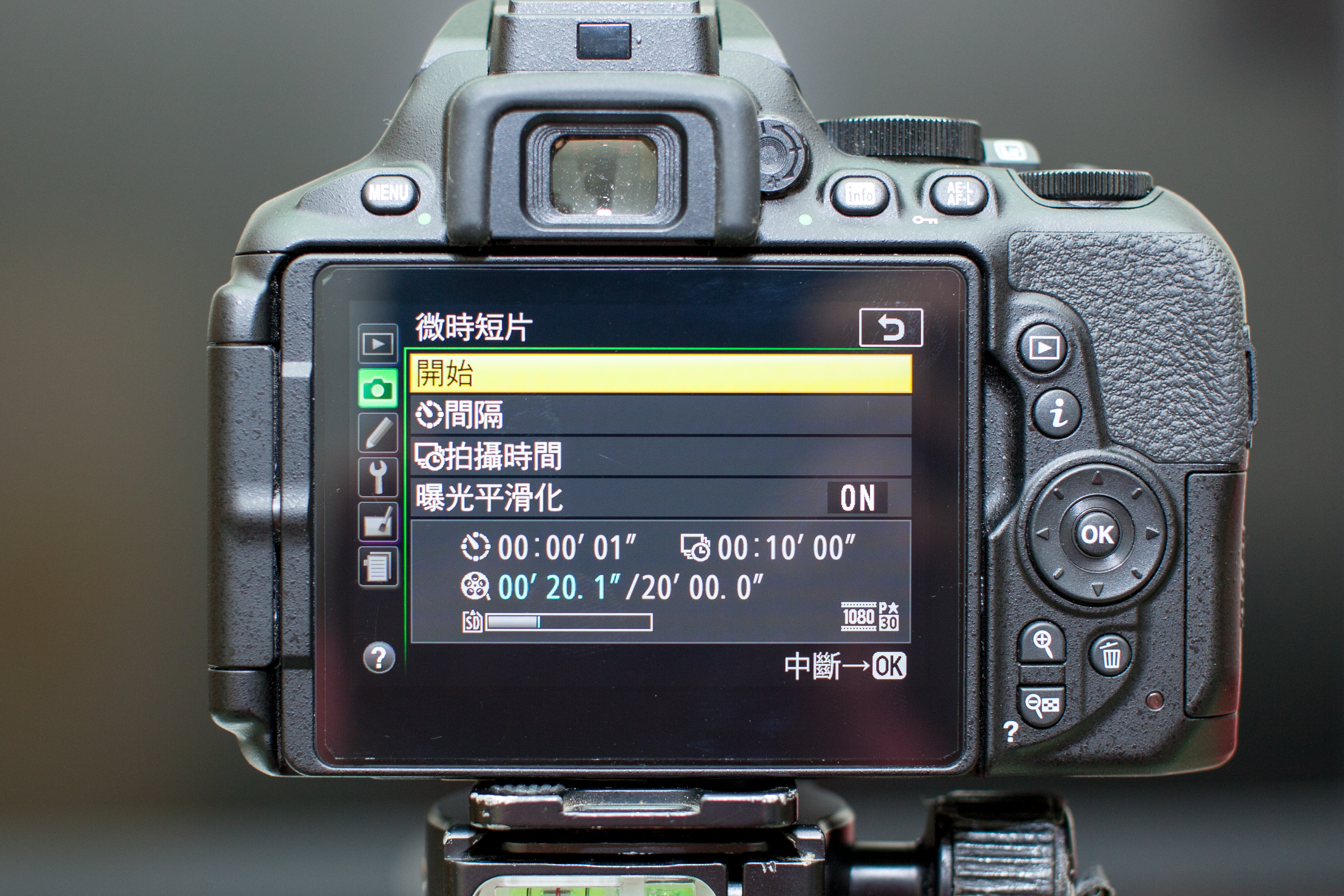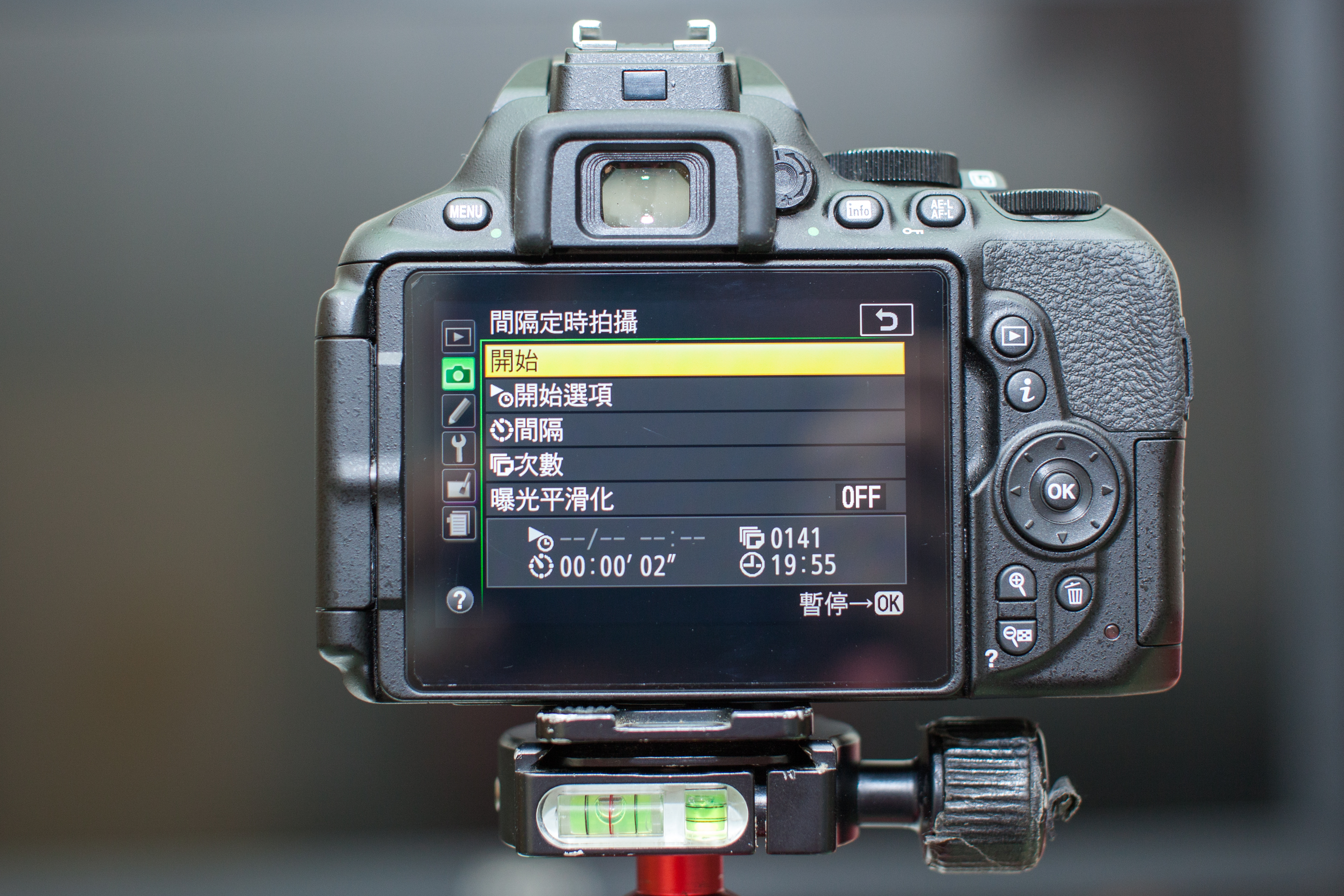 可設定「開始」拍攝的時間(即時或預約)、拍攝間隔多久,「次數」設定拍攝的張數,連曝光平滑化D5600都幫你想到了!