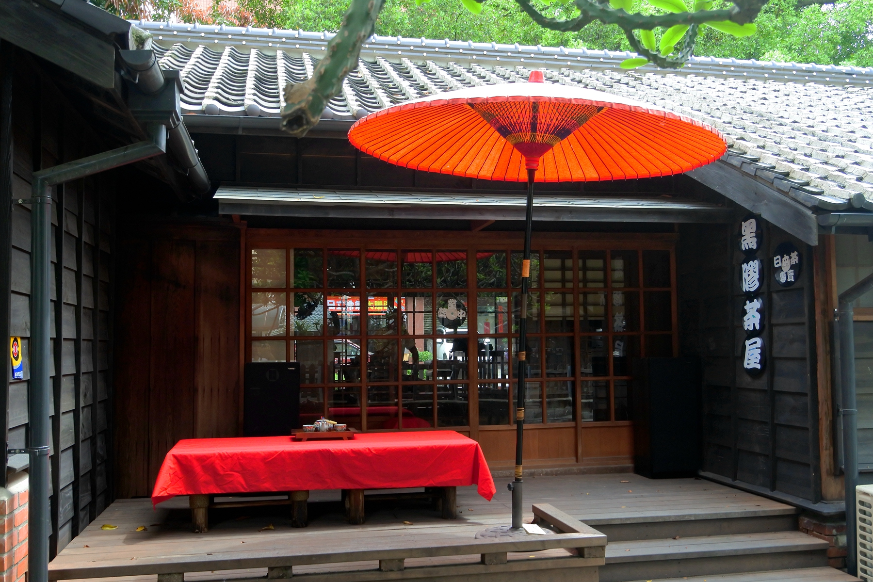 在這文化聚落裡最值得一提的就是這間黑膠茶屋,這可是第一家進駐聚落的店家,老闆說要進駐園區還得繳交企劃書經過審核通過之後才能進到這園區來,進入黑膠茶屋要脫鞋以保護木質地板與塌塌米,這家茶屋當然就是品茶,老闆會一邊泡茶一邊講解品茶的方式,品茶後再嚐嚐手工茶點的確是一種享受。
