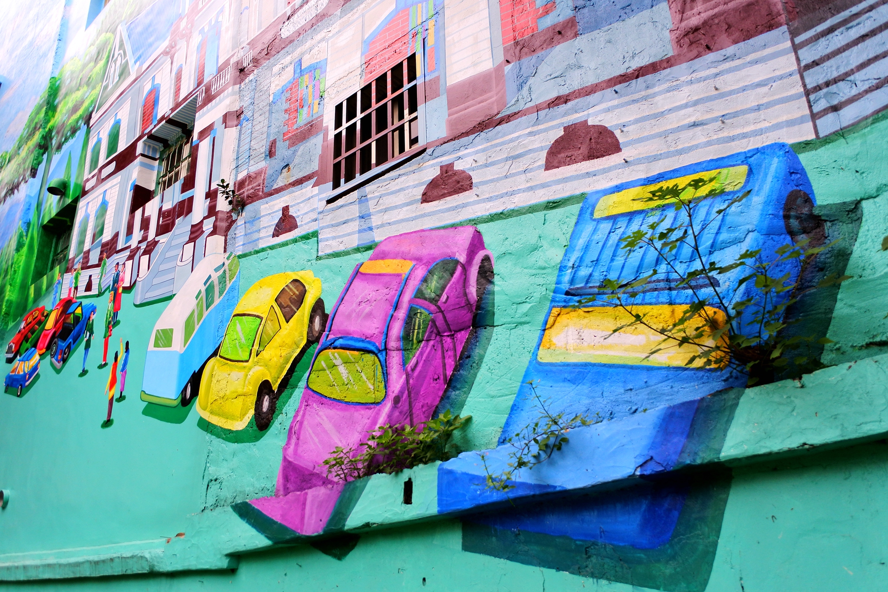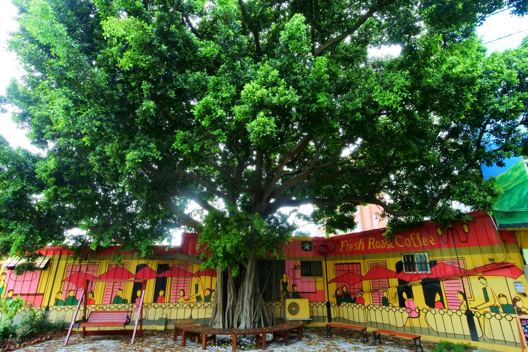 牆壁的彩繪似乎已經成為每個文創聚落的基本配備了,不過彩繪主題要與在地文化融合就是一種挑戰了,雲中街的彩繪壁畫跟周遭建築與大樹就融合地完全無違和感,而聚落的店家也運用了文創風格的裝置藝術成功的整合了在地環境,創造出一種共榮共生的文化氛圍。