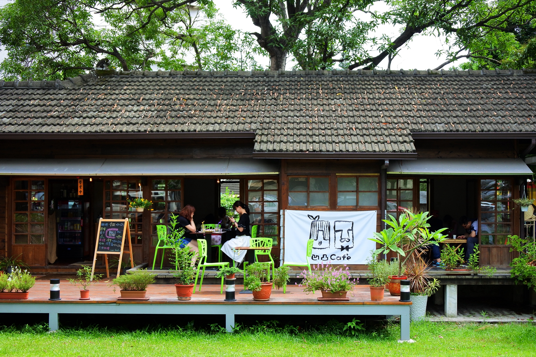 諾大的草坪後方的日式建築,有著搶眼的塗鴉設計logo,整個文化聚落最搶眼的就是凹凸咖啡館了,這裡提供了輕食與咖啡也把都市裡時尚的早午餐風氣帶入純樸的鄉村,而日式建築的骨架裡卻有著工業風格的裝潢,加上彩繪手寫的菜單MENU,帶著童趣又有設計感的浪漫,很適合情侶來這點一杯沒有時間限制的咖啡,然後再來個相看兩不厭。