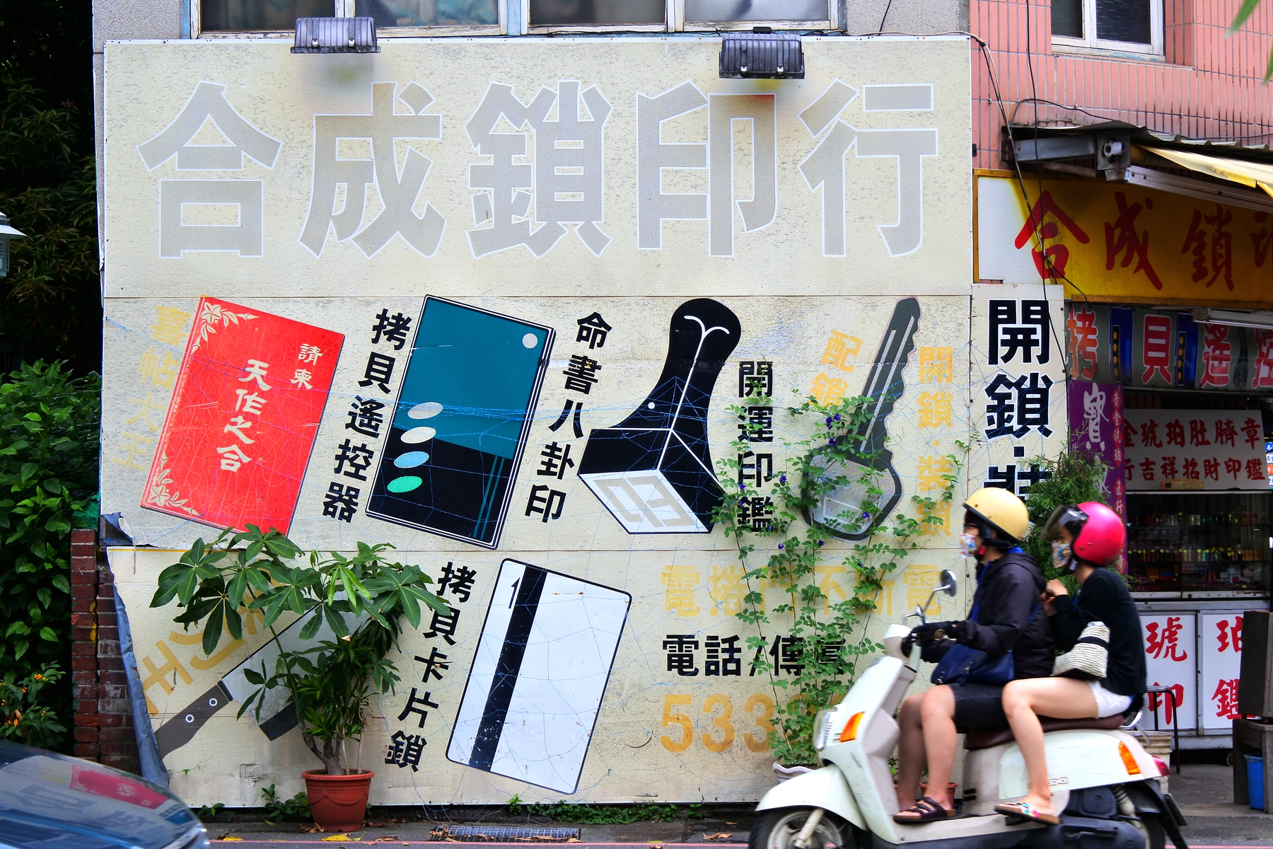 雲中街旁就是充滿著傳統美食的太平老街了,穿過鎮南街就可以到達了,但有趣的是文化聚落周邊似乎也受到了文化創新的洗禮,連傳統店家的廣告刊版也有著巧妙的改變,鎖店與印章店也俏皮地走起彩繪風。