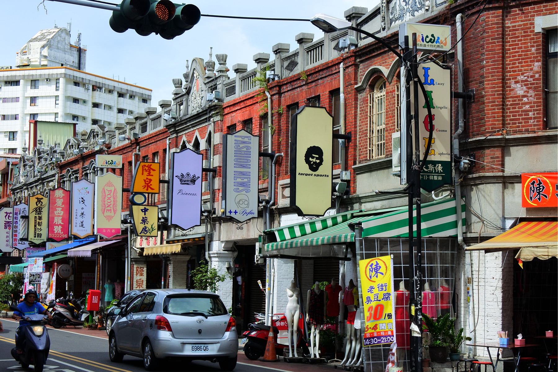 老街上也有不少時下流行的潮牌,潮牌的招牌豎立於百年歷史的巴洛克式老房上,整齊劃一的現代招牌與傳統壁面上的商行名稱有種衝突的美感,這也是雲林斗六太平老街的獨有特色。