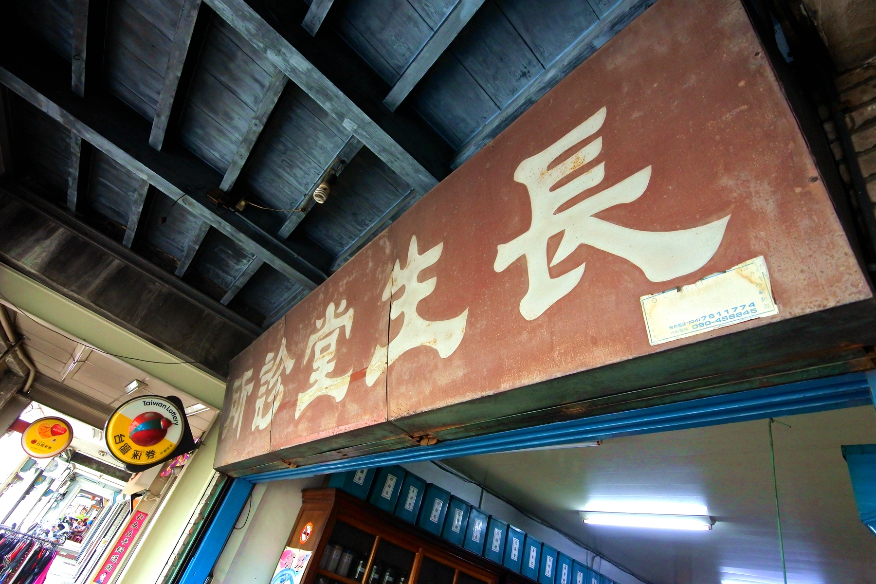 走在太平老街上一眼就看到這家長生堂診所,退色斑駁具有深度的藍色木頭天花板加上診所的藍色藥櫃很難不讓人停下腳步來多看兩眼,門口那隻好客的鸚鵡也隔著鏽蝕的鳥籠熱情地跟客人打招呼。
