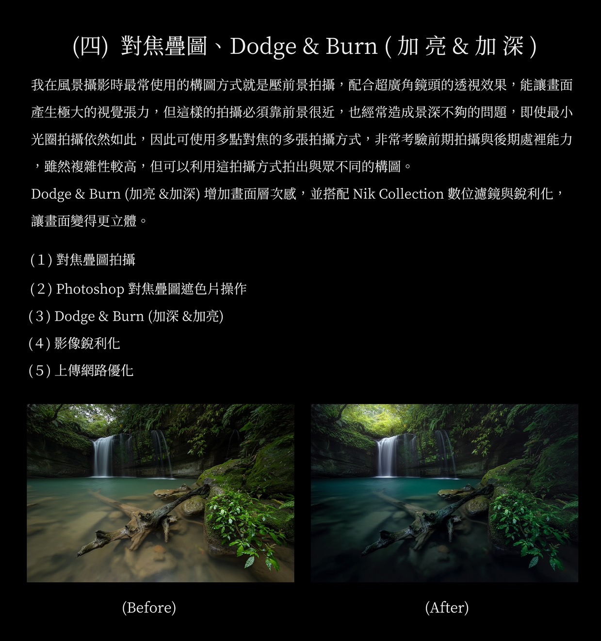 | 溪曝與森林主題編修(RAW檔調整 - Photoshop疊圖) | |