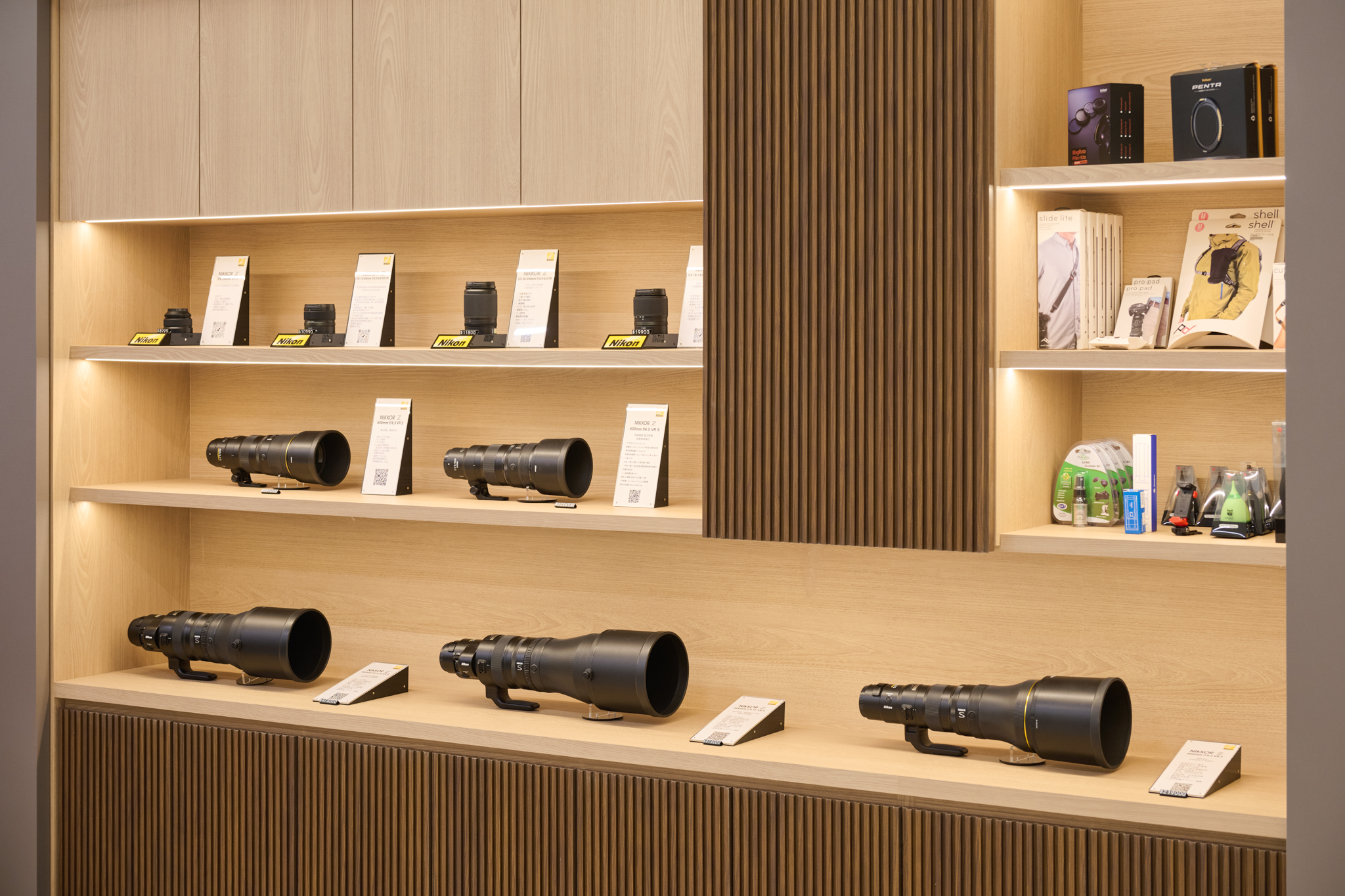 Nikon旗艦店以簡潔明亮的燈光設計,寬敞舒適的空間布局,打造出輕鬆自在的購物氛圍。店內匯集全台最齊全的Nikon機型與鏡頭,從頂級Z9旗艦機皇,到深受的Vlog玩家喜愛的Z50II攝錄旅拍機款一應俱全,還有旅遊玩家爭相搶購的 28-400mm f/4-8 VR一鏡到底利器,都能親自實際操作,無論是專業攝影師還是家庭紀錄愛好者,這裡都將成為創作靈感的起點。