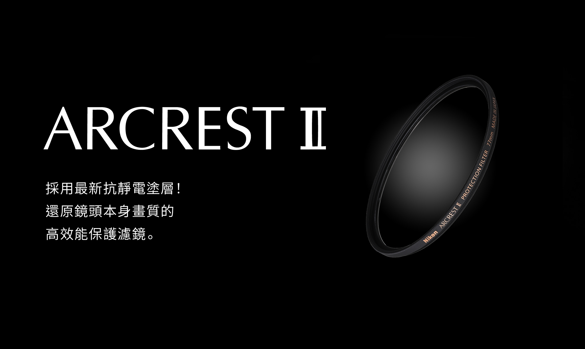 ARCREST II 採用使用於 Nikkor 鏡頭的高品質的光學玻璃,並使用新開發的高精度拋光技術,實現了無干涉紋※的極高的平整準確度。此外,Nikon 專有的濾鏡框架安裝技術「Flat Plane System」平整系統顯著減輕了玻璃的負荷,並最小化了變形現象。ARCREST II 的優異表現是基於眾多要素的累積,以及其濾鏡有效直徑的約85%的範圍內傳輸波前精度小於λ/4的設計。作為一款高性能盡可能不損害鏡頭的原始描繪能力的保護濾鏡,我們高度重視每個環節以提高其光學性能。