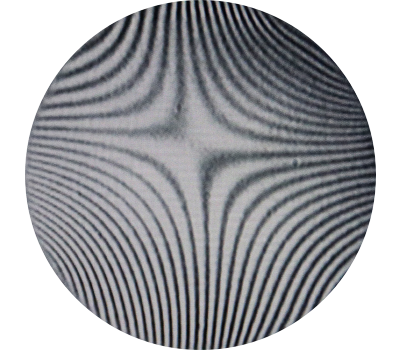 ※ 光干涉造成的明暗條紋。平面精度越高(表面扭曲越小),條紋越少。